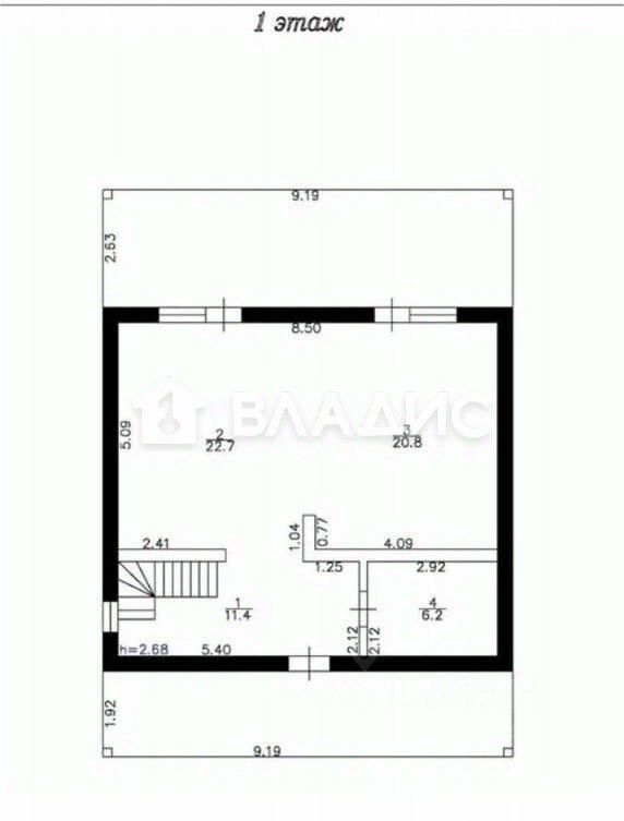 1 этаж: прихожая, кухня, гостиная, санузел.
