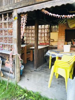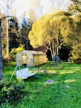 На участке Баня ,туалет , хозблок , летняя беседка ,парник , ландшафтные растения !