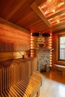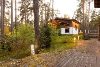 Участок 25 соток, на котором располагаются два дома: основной и гостевой, который включает спа зону и выход на террасу.