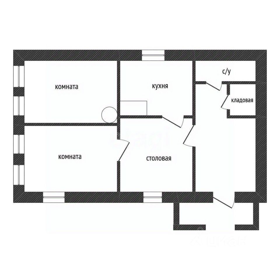 На первом этаже расположены две комнаты, кухня, столовая. В коридоре есть вместительная кладовая, выход на сеновал и 2 этаж (там расположена небольшая летняя комната).
