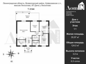 Площадь застройки — 124 м² (вместе с террасой), жилая — 94 м².