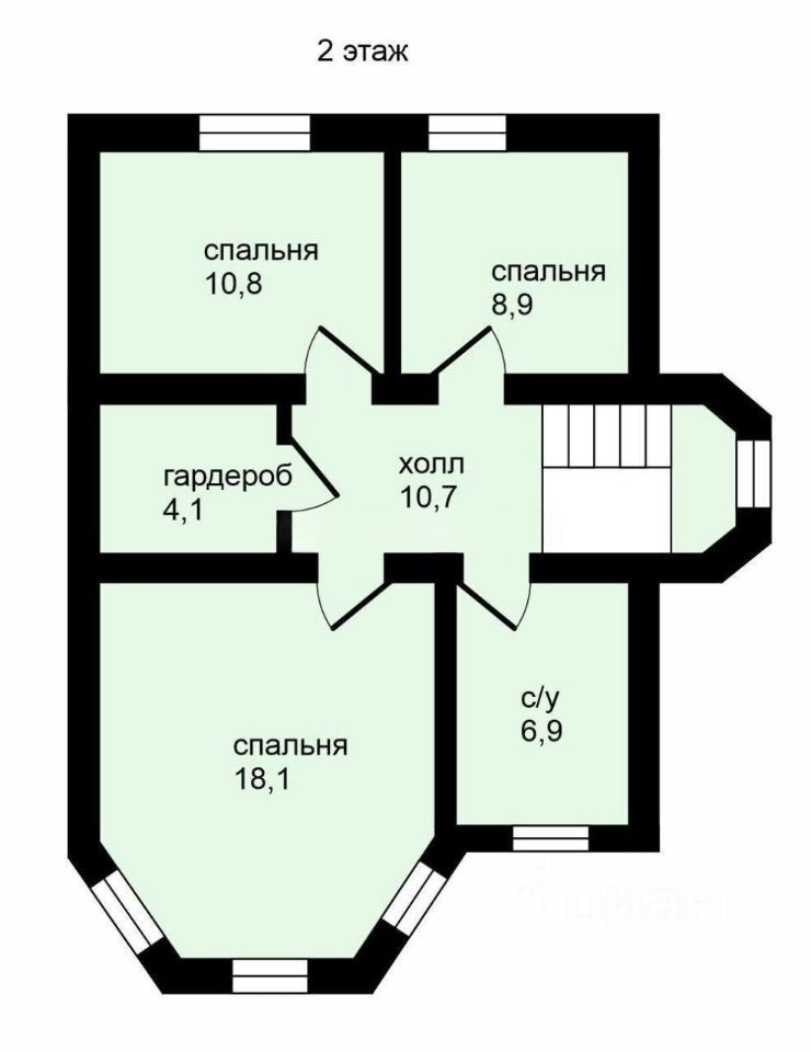 2-й этаж: 3 изолированные спальни, совмещенный санузел, гардероб;