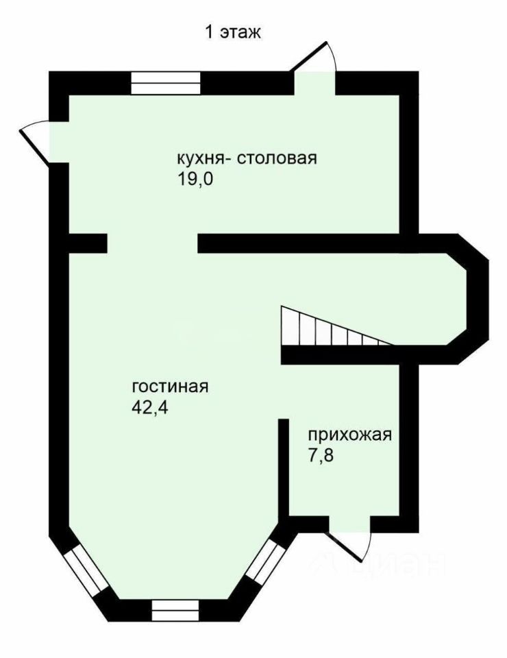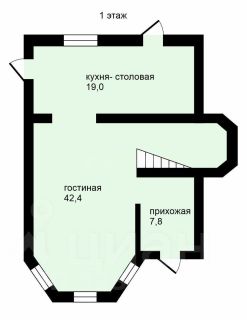 1-й этаж: светлая гостиная, большая функциональная кухня, прихожая;