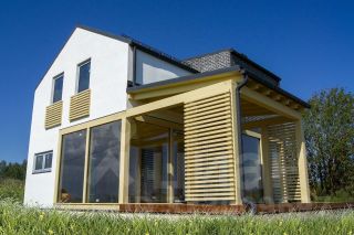 - Просторная гостиная с панорамным остеклением (21,5 кв. М), позволяющая наслаждаться видами сада и окрестностей прямо из окон;