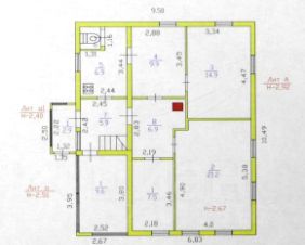 Четыре комнаты 21,2 + 14,9 + 9,6 + 6,9 кв.м., кухня 9,9 кв. м., санузел/ванная 9 кв.м., Прихожая 5,9 кв.м., крыльцо 2,9 кв.м.