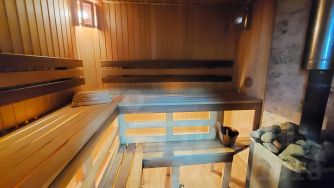 На участке построена новая современная баня, 2013 года постройки. Площадь бани 30 м.кв. (6х5), на монолитной плите. Материал стен клееный брус. В баню заведена вода, есть туалет.