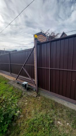 Ограждение забором из профнастила с автоматическими воротами. Забор установлен на ленточном фундаменте.