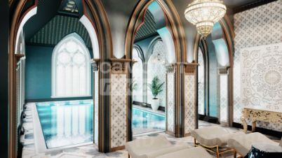 В доме фигурные двери и витражные окна выполнены из настоящего дуба, 2 балкона. Огромный зал со вторым светом. На всех этажах потолки более 3х метров и очень много света. Также установлен лифт до 3го этажа. Залита чаша под бассейн, полностью готова турецкая сауна.