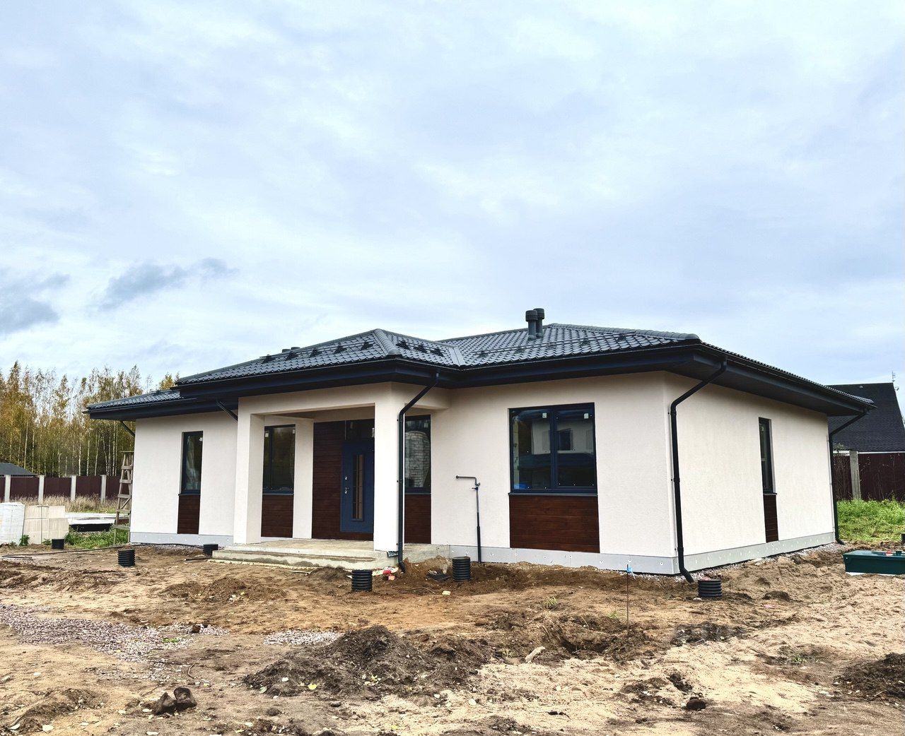 Дом с отделкой 167 м2 из газобетона 400 мм, на фундаментной плите 300 мм. Фасад: штукатурка и планкен.