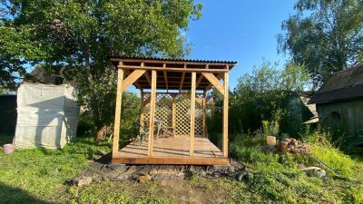 На территории участка имеется постройка под баню, которая используется как летний домик для ночлега размер 6 на 3 метра, беседка 3 на 3 метра, сарай для инвентаря.