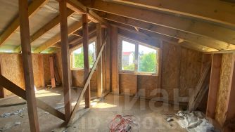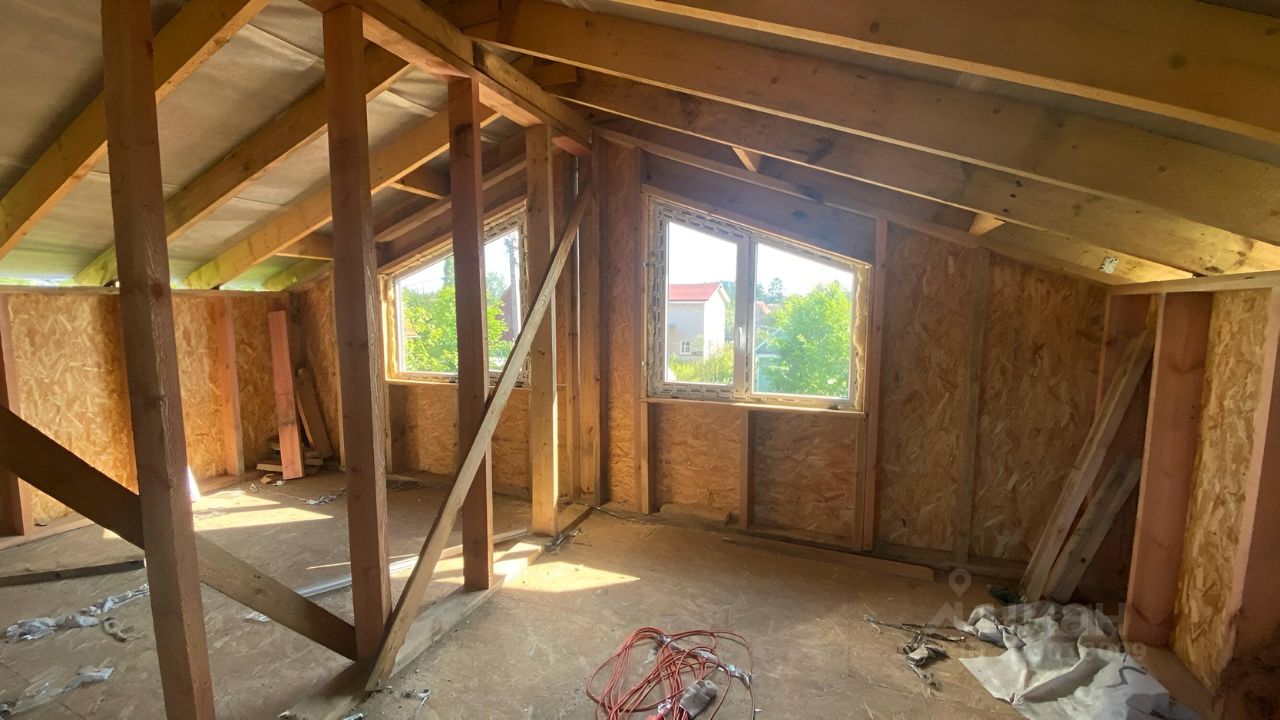 Продаётся участок 5,5 соток, дом полтора этажа площадью 72 кв.м. Дому требуется утепление и отделка, планировалось утепление стен 150 мм, кровля 200 мм, пол 200 мм (уже утеплен), всё это позволяет сделать ремонт на свой вкус. На первом этаже расположены кухня-гостиная, а также санузел и коридор. Второй этаж включает две спальни и пространство под гардеробную или зону отдыха.
