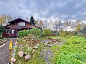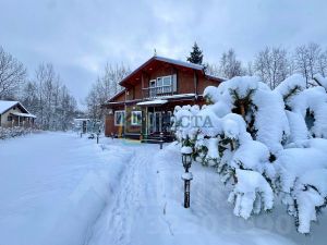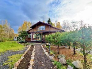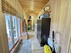 Большой каркасно-щитовой дом на свайном фундаменте (сваи - 4,5 м). Общая площадь дома - 135 кв.м. Крыша двускатная, кровля - ондулин. Внешняя отделка выполнена ОСБ 12 мм, покраска швейцарской краской с защитой от выгорания. Окна: стеклопакеты 70 мм.