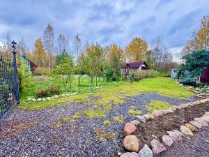 Земельный участок 7 соток, ровный, сухой, граничит с лесным массивом. На участке располагается хозблок, беседка, зона для отдыха и мангальная зона, установлены кованые ворота и калитка. Участок ухожен, засеян газоном, растут сосны, облепиха, кусы малины и смородины, клумбы с цветами.