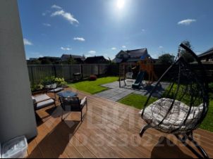 Очень уютный участок с террасой из лиственницы, детская площадка с резиновой плиткой для комфортных и безопасных игр. Посажены гортензии и пионы, для тех кто ценит красивые посадки) по периметру газон. Под крышей установлена гирлянда бахрома, зимой очень красиво освещается, на стенах дома так же установлена интерьерная подсветка.