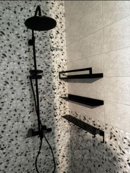На полах кварц виниловая плитка хорошего качества. В с/у керамогранит