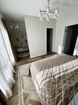 Стены окрашены, натяжные немецкие траневые потолки. Металлическая входная дверь с терморазрывом, межкомнатные двери соф тач с фурнитурой morelli. На первом этаже есть комната-кладовая под лестницей, оборудованная местами для хранения вещей.