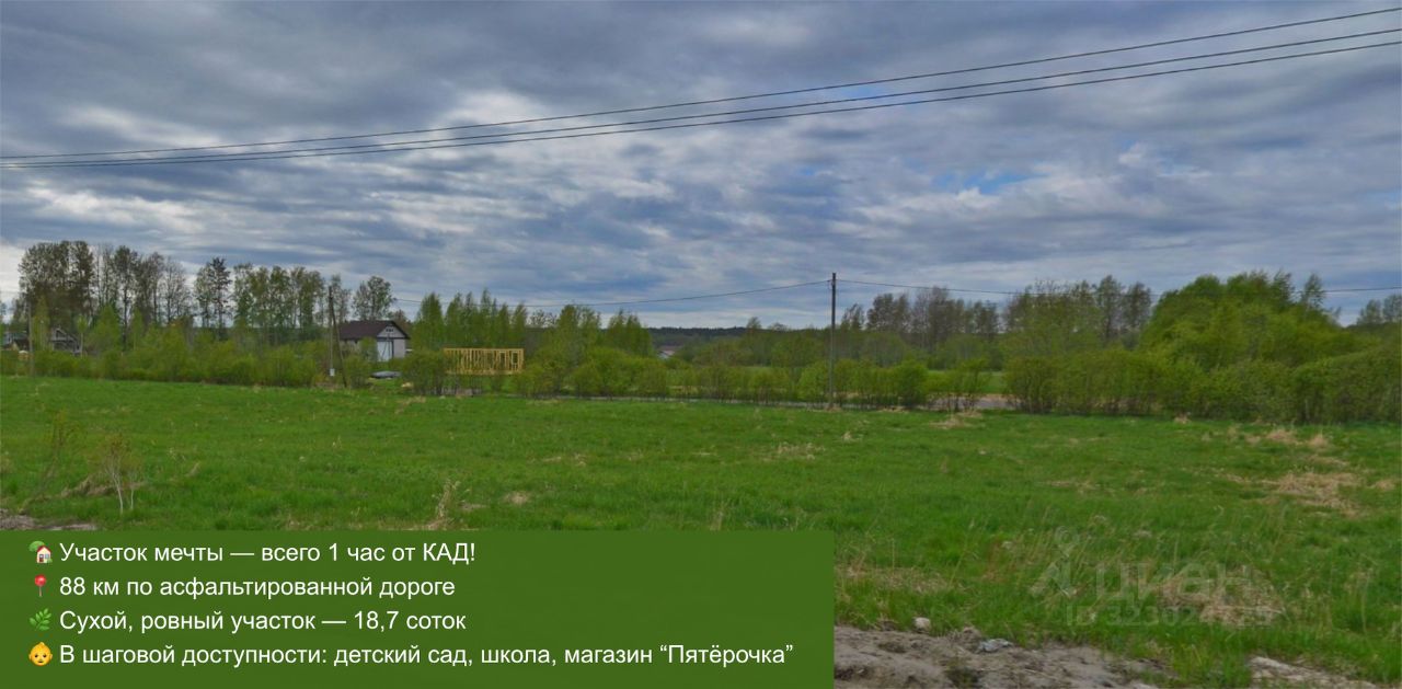 Рядом продаётся соседний участок 18,06 соток (кад. 47:03:0505001:111) — можно объединить для увеличения площади.