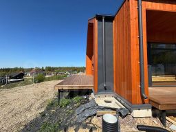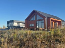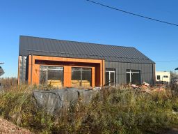 Коробка дома выполнена из 300 газобетона, дополнительное наружное утепление белтермо 25, кровля клик фальц, утепление кровли комбинированное 200 мм вата + дополнительно 25мм. Белтермо, отделка снаружи так же комбинирована: часть фасадов это деревянный, вертикальный планкен, а по части фасадов клик фальц спускается с кровли. В строительстве использовались качественные материалы, в чем можно убедиться вживую, приехав на просмотр, пока дом находится в такой стадии готовности. По планировке: кухня-гостиная 49 кв.м.; спальни: 16+12+11 кв.м., санузел 5,5 кв.м., туалет 1,5 кв.м., котельная 5,5 кв.м., прихожая 7 кв.м.