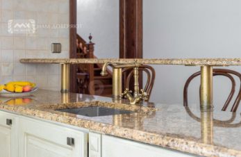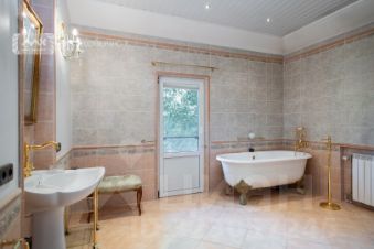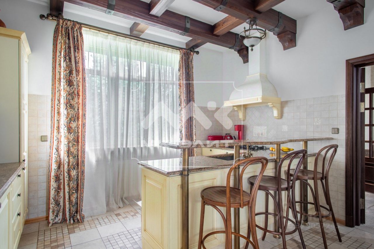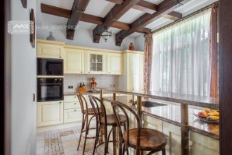 Дом площадью 315 квадратных метров расположен на участке в 15 соток. Этот дом обладает всем необходимым для комфортной жизни: кухня, оборудованная техникой Miele и Kuppersbusch, большая столовая и гостиная с камином, гостевая комната с балконом, кабинет, две детских комнаты и мастер-спальня с балконом, а также три санузла. В доме есть большой подвал с несколькими комнатами. На участке расположен гараж на несколько машин и беседка.