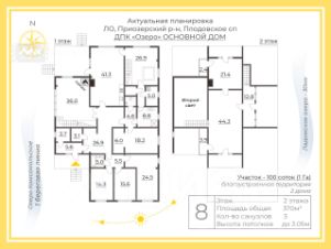Основной дом 370.6 м2 - 5 спален, гостиная с камином, кухня-столовая, бильярдная зона, кабинет, несколько террас.