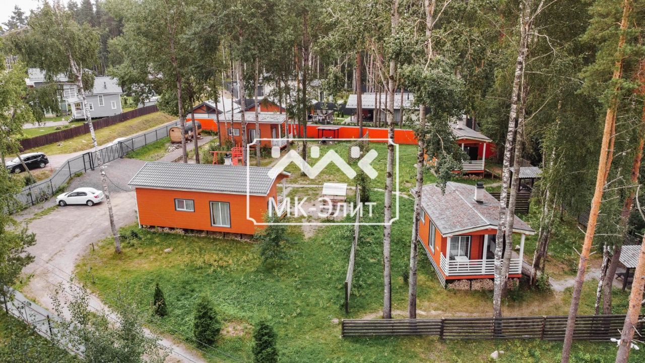 На закрытой территории 35 соток рядом с сосновым лесом расположены 6 комфортабельных домов. На территории есть место для постройки ещё 2 домов. У каждого дома своя территория, мангал, площадка для отдыха. Дома оборудованы всем необходимым для всесезонного проживания. Электричество 60 квт, центральное водоснабжение, канализация- септики. Отопление- электрическое, в 4 домах- каменные печи. Горячая вода- бойлер. В санузлах теплый пол.