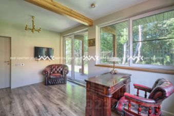 В доме продуманная эргономичная планировка, установлены окна в пол. Когда находишься в зоне кухни-гостинной, открывается полный обзор на лес.