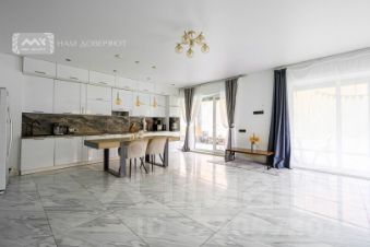 В доме 3 спальни, 2 санузла, большая гардеробная, огромная кухня- гостиная с выходом на террасу 42 кв.м