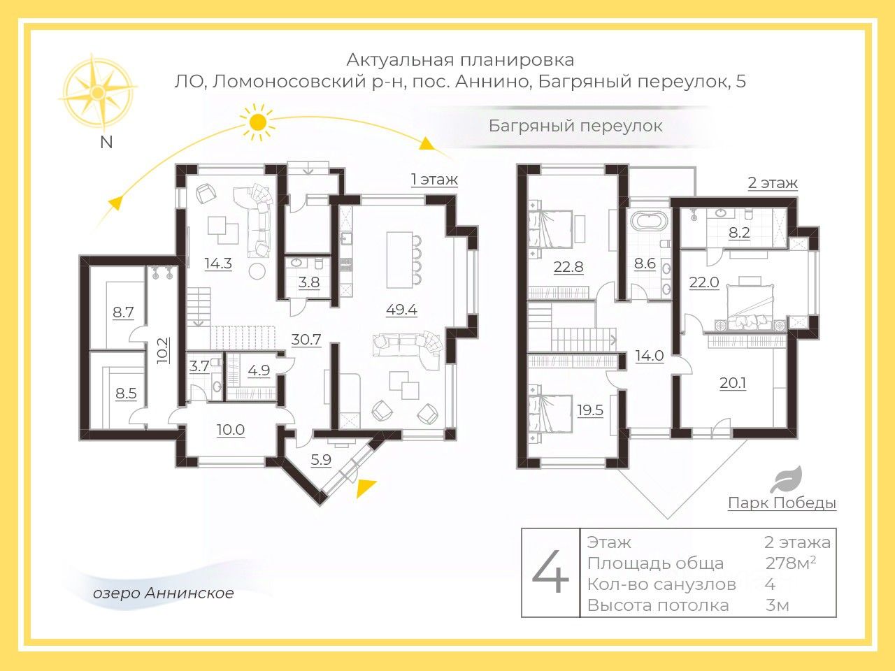 - рядом парк, Аннинское озеро, фитнес-клуб, бассейн, медпункт, стоматология.