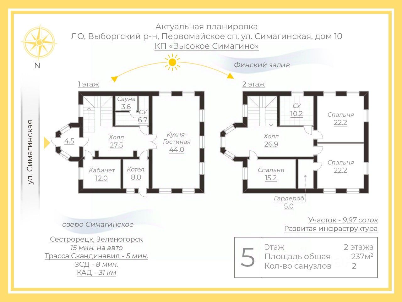 Арт. 99945707 Коттеджный посёлок Высокое Симагино расположен в Выборгском районе, всего в 40 минутах от центра города (от съезда с ЗСД 17 км), что позволяет жить за городом круглый год и ездить на работу в Санкт-Петербург.