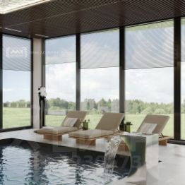 Итак, дом 2024- 2025 г. постройки. Площадь дома 655 м. кв. На первом этаже Вас встречает большой холл 40,8 м. кв., , также расположились большая кухня-гостиная 75,4 м.кв, гостевая спальня 23.9 м.кв., три санузла, бассейн 102,9 м.кв, сауна, зона релакса. На втором этаже расположены мастер спальня 27,5 м.кв., два санузла, еще две спальни. Взрослых и детей конечно порадует свой лифт, который позволит быстро телепортироваться с одного этажа на другой. А парящая лестница не сможет оставить равнодушным ни будущих собственников, ни их гостей. Лестница поистине является воплощением архитектурного изыска, она буквально воспаряет в небо и является одной из доминант прекрасного дома.