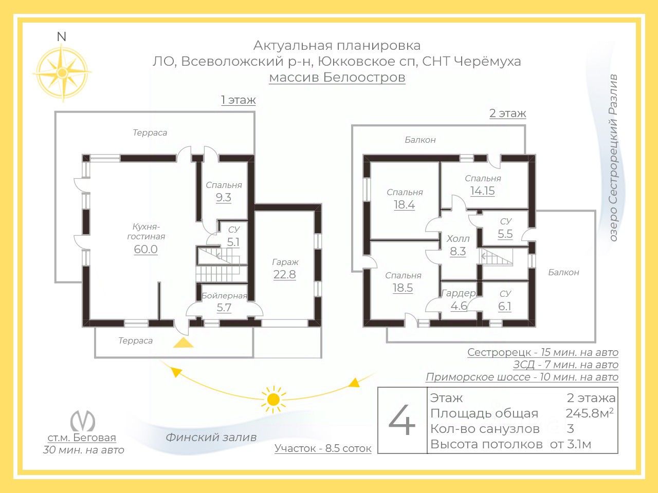 Дом расположен на территории нового закрытого коттеджного поселка Черемуха, который находится на границе с Курортным районом в массиве Белоостров. Дом с возможностью постоянной прописки.