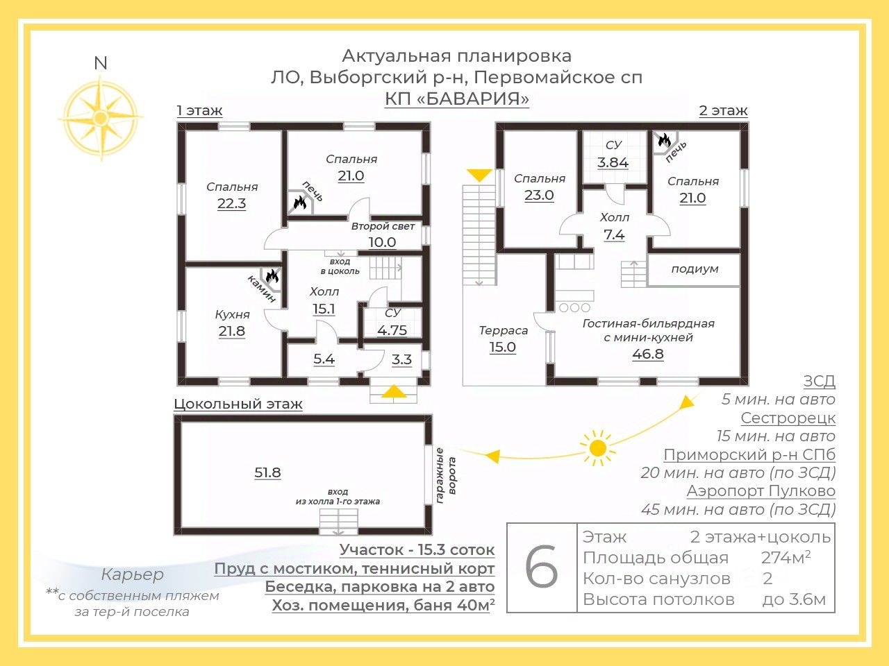 ИНФРАСТРУКТУРА: два отличных фермерских магазина в 2 км от поселка (всегда свежие мясо и овощи), итальянский ресторан 9 (с настоящим поваром-итальянцем пицца самая вкусная на северном побережье). Сетевые продуктовые магазины в 15-ти минутах на авто (Лента, Пятерочка, Магнит). В непосредственной близости от поселка строится Пятерочка 15 минут пешком/3-5 на авто. Ближайшая амбулатория в Сестрорецке.