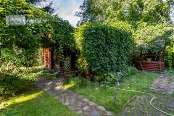 Со стороны улицы участок закрыт по периметру вековыми елями