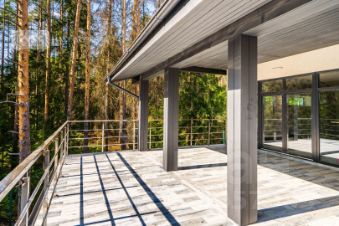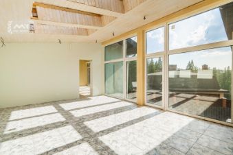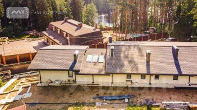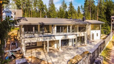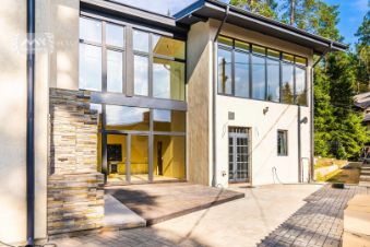 Дом полностью достроен, проектировался главным архитектором г. Санкт-Петербурга Александром Викторовым по эксклюзивному дизайн проекту, монолитная плита 300 мм, каркас из монолита, перегородки из газобетона 400 мм + утепление + штукатурка, кровля мягкая черепица. Идёт доделка обоих монолитных лестниц и ландшафтного дизайна на участке