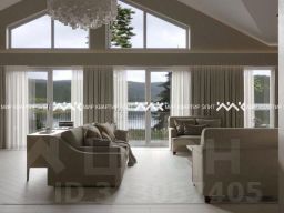 Кирпичный дом состоит из двух уровней: на первом этаже расположена, жилая зона, а цокольный этаж отдан под комнату отдыха, технические помещения, помещения для хранения и постирочную. Дом подойдет для проживания большой семьи: жилая зона состоит из 4 мастер-спален (каждая со своей ванной комнатой и гардеробной), гостевого санузла, кухни-столовой, гостиной с камином и потрясающим видом на гладь озера. Потолки в этой части дома достигают почти 6 метров, а окна в пол создают ощущение свободы и легкости. Из гостиной зоны есть выходы к берегу своего озера, на террасу и к большой крытой зоне барбекю. В цокольном уровне можно разместить библиотеку, бильярд, домашний кинотеатр или оборудовать спортивный зал.