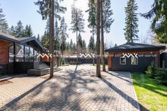 На закрытом участке есть закрытый гараж на 4 автомобиля с оборудованной квартирой для обслуживающего персонала или охраны и мойкой для автомобилей.