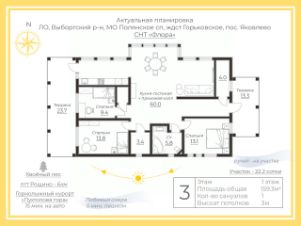 Планировочное решение и функциональное зонирование дома отвечают всем современным представлениям о комфортной жизни: в доме просторная прихожая; большая кухня-гостиная,   3 полноценные спальни, просторный совмещенный  санузел, две гардеробные.