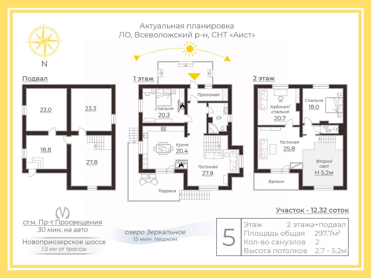 Ленточный фундамент позволяет использовать цокольный этаж для подсобных помещений, возможна установка сауны. Дом построен из высококачественного бруса в 2017 году и поставлен на кадастровый учет.
