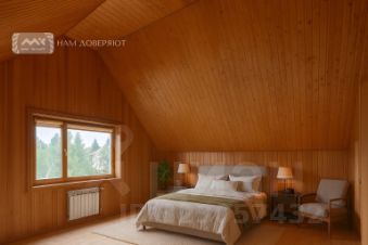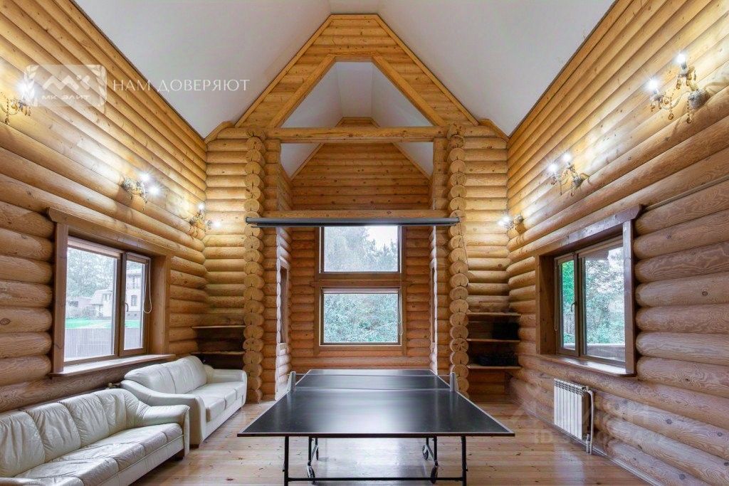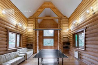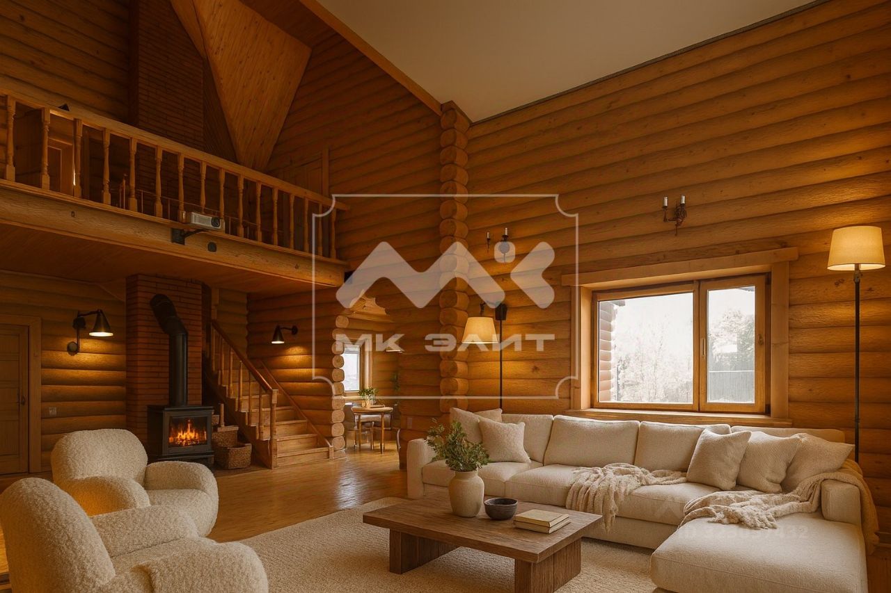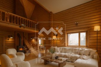 Бревенчатый дом индивидуального дизайна с высотой потолков до 7 метров. Много света и воздуха. Приятная атмосфера, камин, терраса, водоем - всё это создает неповторимый уют и комфорт загородной жизни. Близость к городу, наличие магазинов и автобусных остановок, асфальтные дороги позволяют жить в доме круглый год.