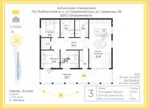 - 3 спальни, либо можно сделать 2 спальни и 1 кабинет