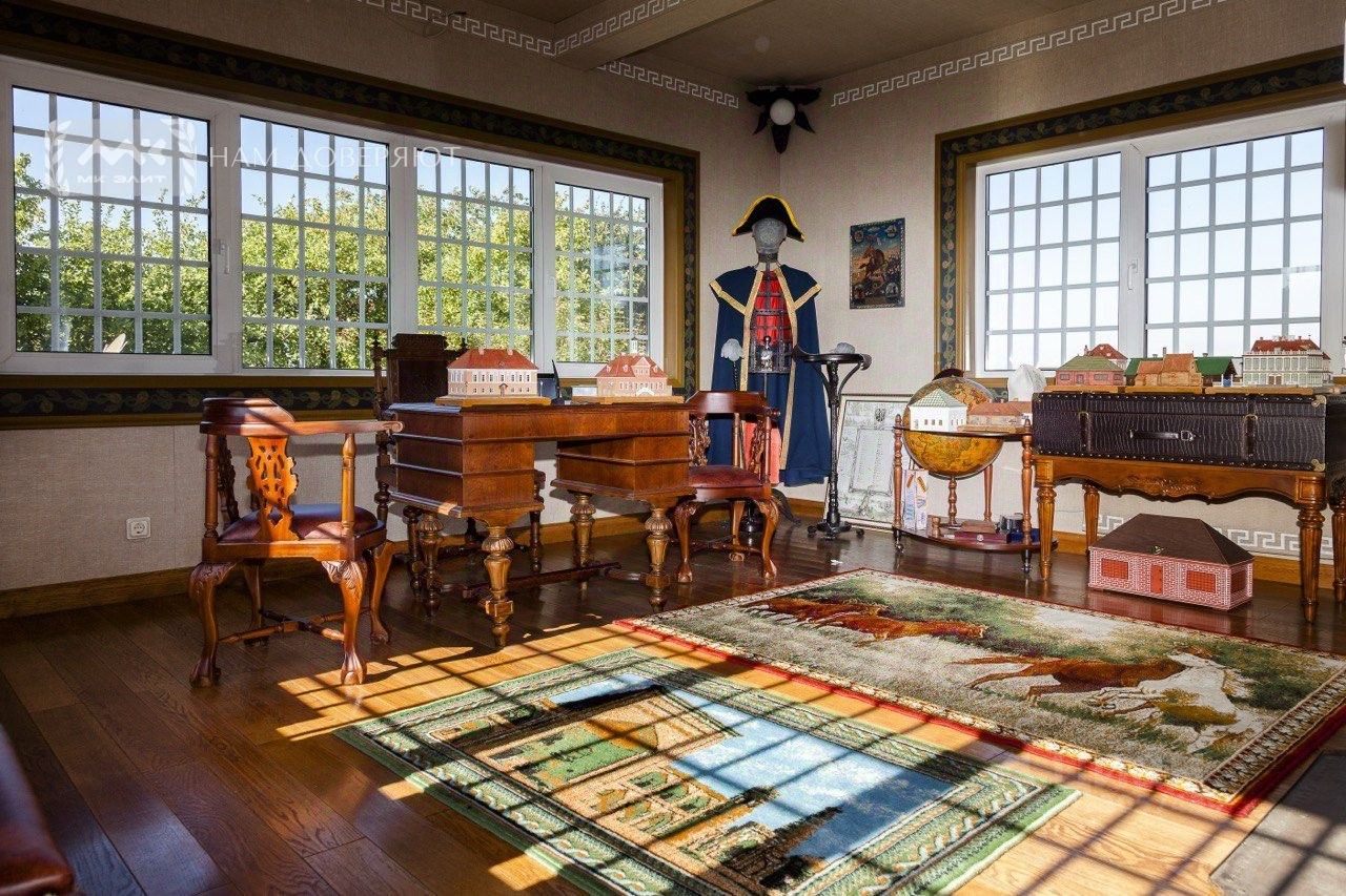 Домик Петра — не реконструкция, а воплощение духа эпохи. Сруб из отборной северной сосны, нагретый солнцем и временем. Внутри — готовый для жизни дом с кухней -гостиной, спальнями, просторной детской на втором этаже, кабинетом и санузлом. Массивные дубовые полы, художественная роспись, точные копии мебели (19 век) из знаменитого домика Петра, кованые детали и текстиль, созданный по старинным технологиям. Это ваша личная резиденция, где можно провести вечер у голландской изразцовой печи, ощущая связь с прошлым. Площадь Домика Петра 114 метров..