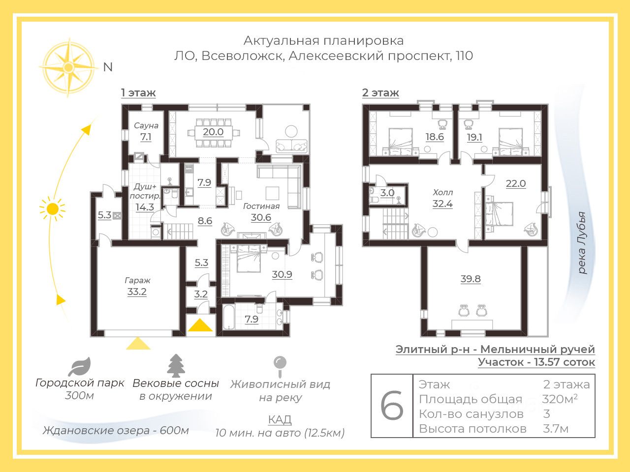 Представьте: просторную виллу в 320 кв.м. на 13,6 сотках в тихом, элитном районе Мельничный ручей, в самом сердце Всеволожска, в окружении вековых сосен, с живописным видом на реку Лубья и городской парк всего в 300 метрах от вас - идиллическая картина спокойствия и комфорта.
