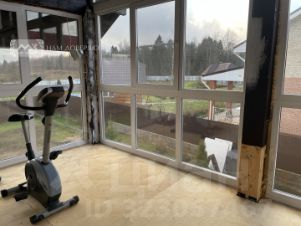 Площадь дома 143 м2. На втором этаже есть застекленная терраса с видом на лес и поле.