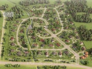 Коттеджный поселок занимает площадь в 24 га. Всего в посёлке 76 земельных участков. Единая архитектурная концепция: дома большой площади (не менее 300 кв.м), с панорамным остеклением и отделкой природным камнем (6 вариантов домов на выбор от застройщика).