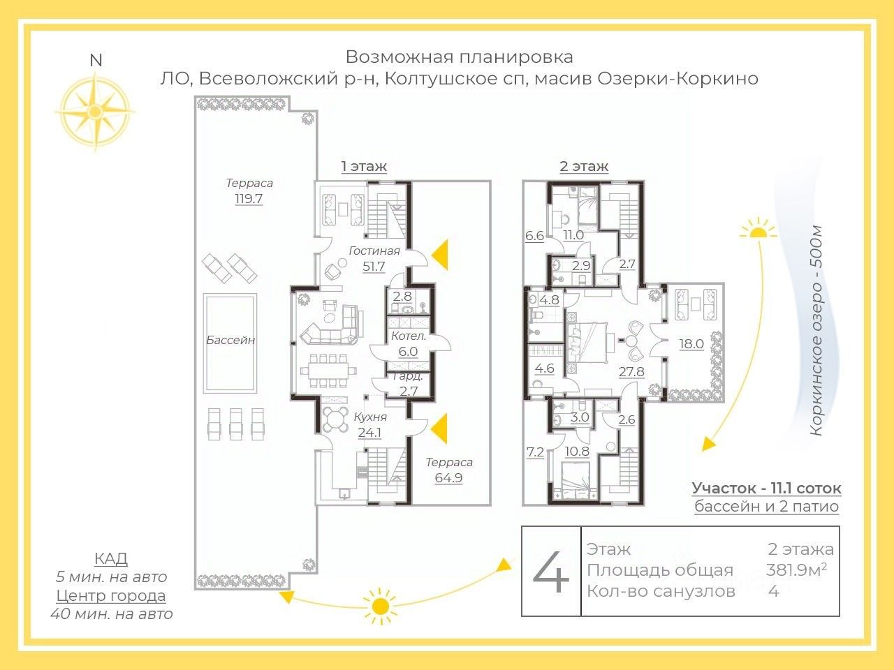 Арт. 69099216 Предлагаем Вашему вниманию идеальный загородный дом в шикарной локации вблизи Коркинских озер. Идеальная транспортная доступность: всего 40 минут до центра Санкт-Петербурга.