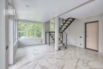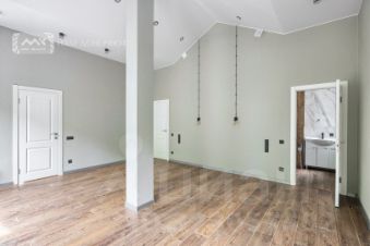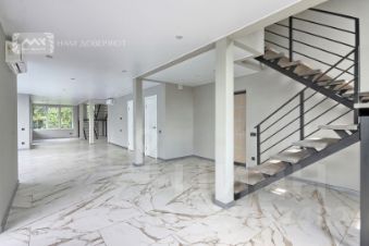 Первый этаж занимает просторная стометровая кухня-гостиная и гостевой санузел. Высокие потолки и панорамные окна создают обилие света и простор. Смонтирован теплы пол, установлена система кондиционирования!