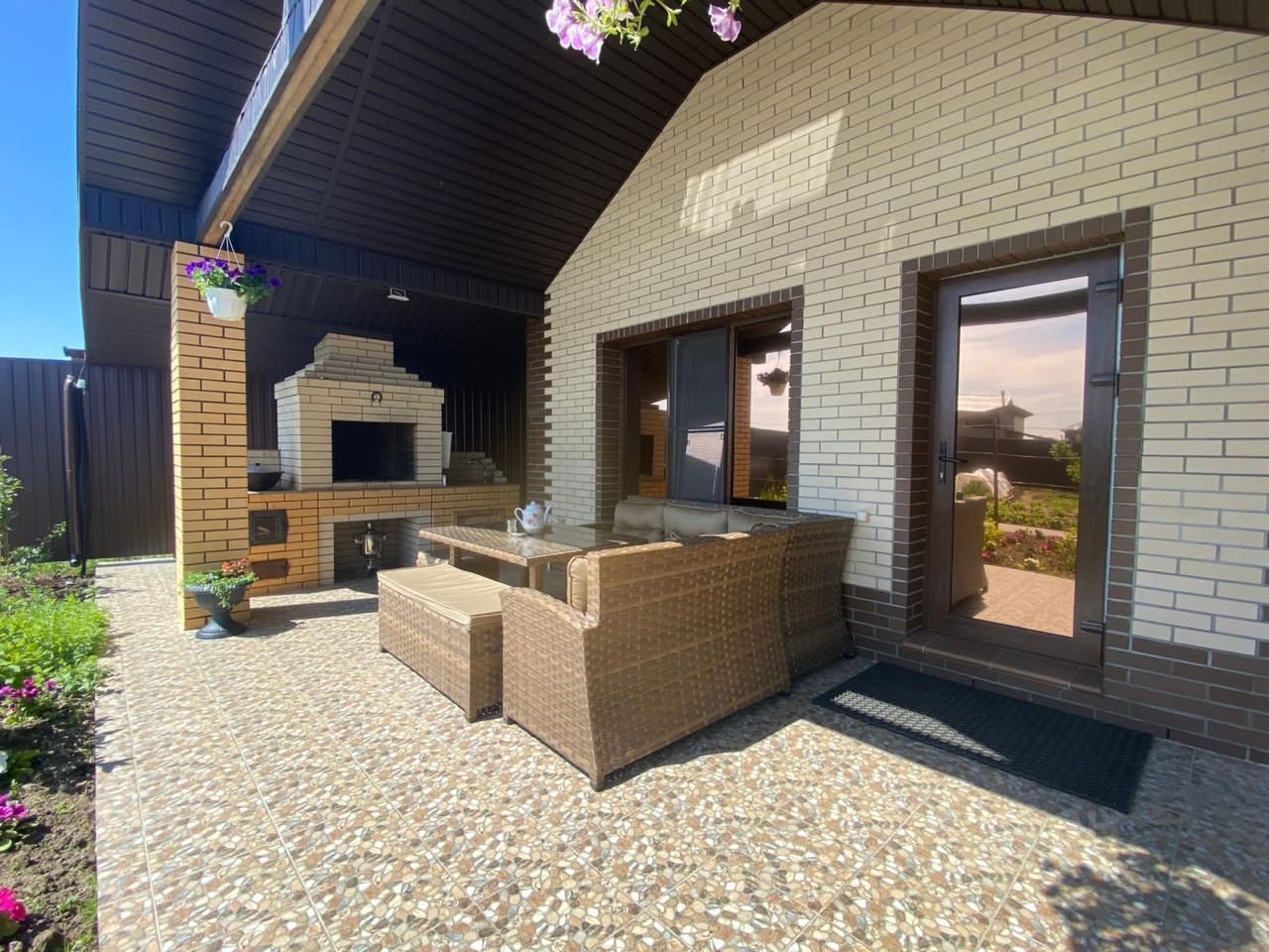 - Терраса на улице позволяет наслаждаться видами цветов, свежим воздухом и благоуханием тишины. Мангал, печка, холодильник в зоне террасы где можно весело проводить время с друзьями.