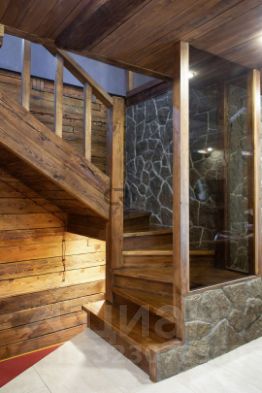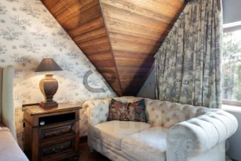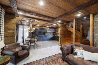 На первом этаже - гостиная с большим дровяными камином; санузел.
