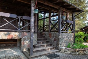 На территории также расположен гостевой дом (76.8 м2) со своей террасой с видом на озеро.