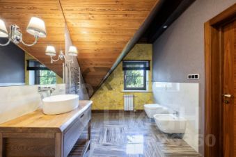 Основной дом 219 м2, состоит из трех этажей один из которых цокольный.